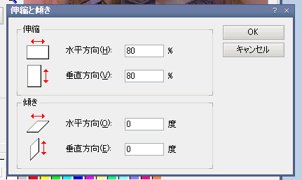素直に小さくするだけなら、伸縮の水平と垂直を同じ%にしましょう。傾きは両方0で。