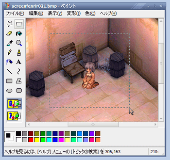 ここでオマケ解説。 SSって全然関係ないヒトの名前とか発言とか入ってたりしますよね。 一番簡単な方法を。左側に青いエンピツアイコンがあります。 これをクリックすると、エアブラシモードになります。 一番左に■と□が重なってますね。