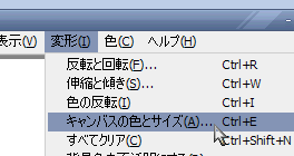 「変形」から「キャンバスの色とサイズ」を選びましょう。